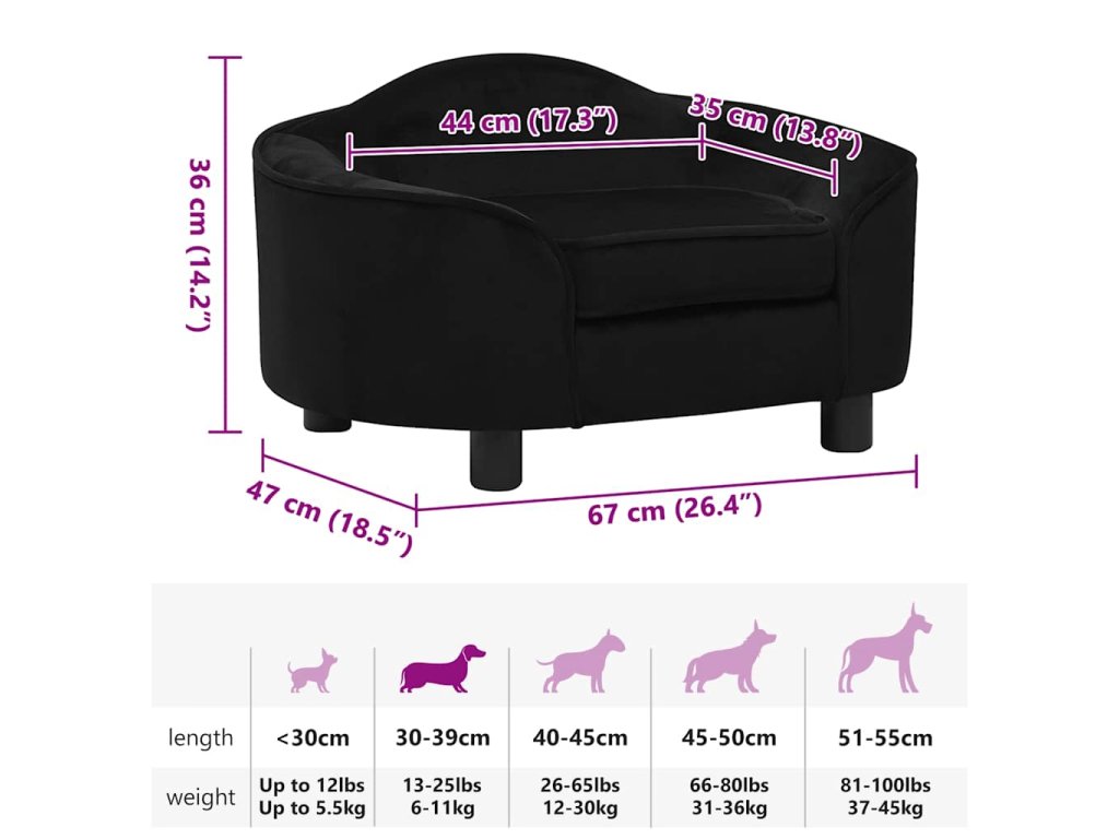 Pohovka pro psy černá 67 x 47 x 36 cm plyš 171086