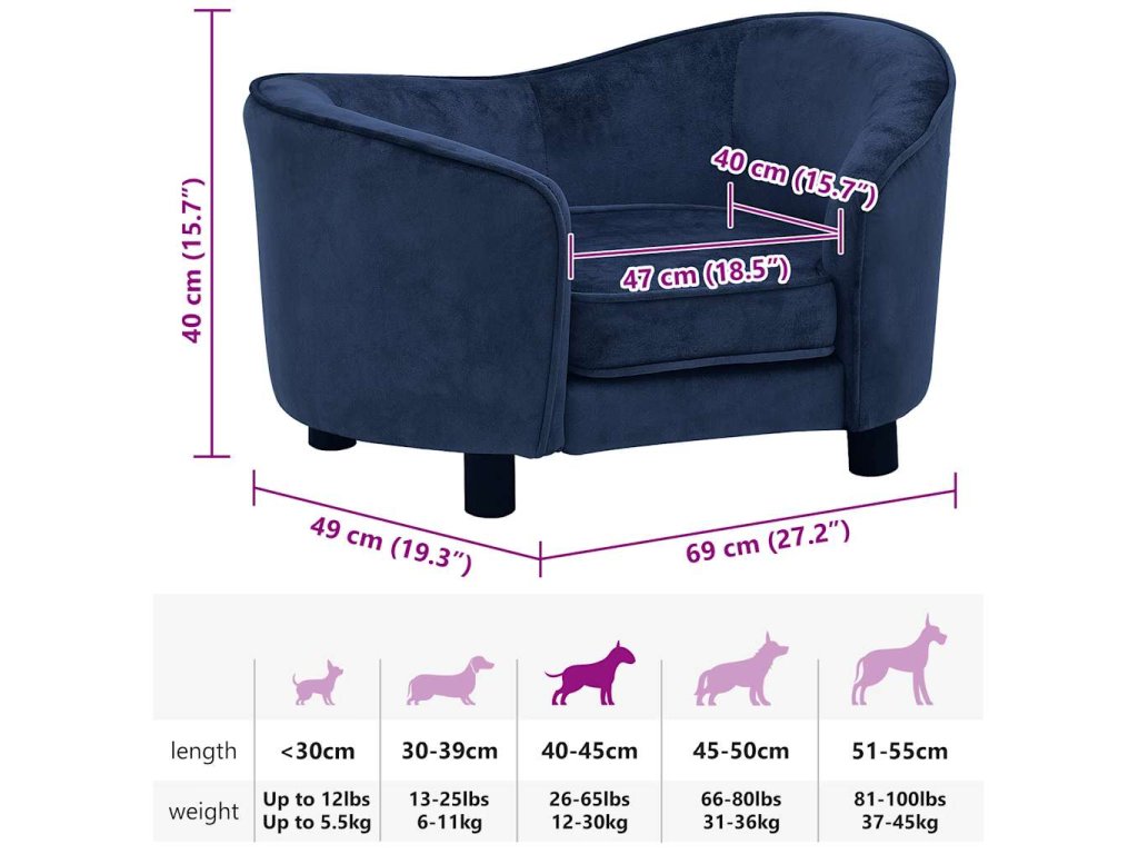 Pohovka pro psy modrá 69 x 49 x 40 cm plyš 171023