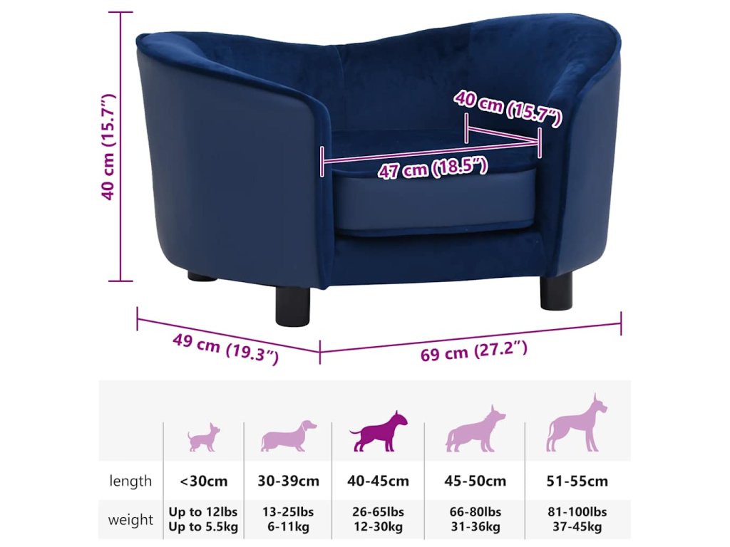 Pohovka pro psy modrá 69 x 49 x 40 cm plyš a umělá kůže 171034