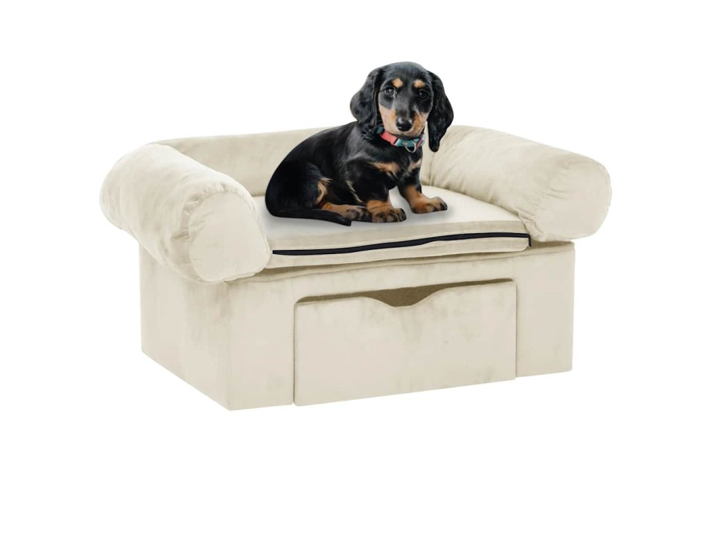 Tato pohovka pro psy s úložnou zásuvkou je skvělý způsob, jak vašemu mazlíčkovi zařídit jeho vlastní prostor v obýváku či ložnici. Hodí se nejen pro psy, ale i pro kočky a další menší zvířata.