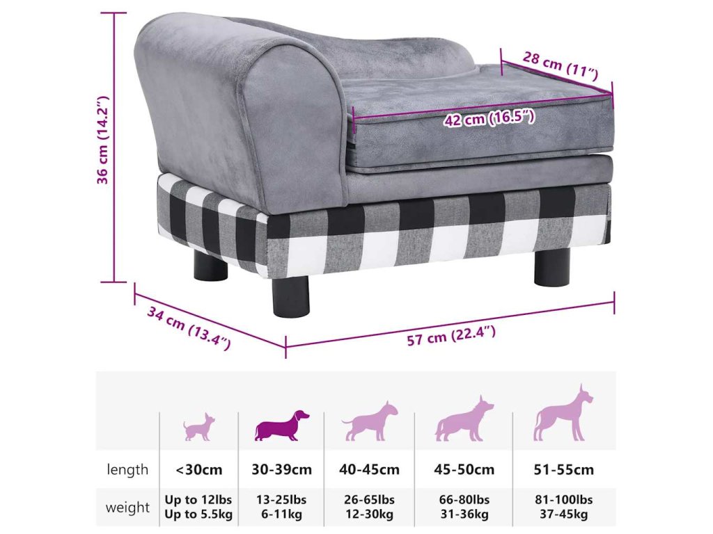 Pohovka pro psy šedá 57 x 34 x 36 cm plyš 170940