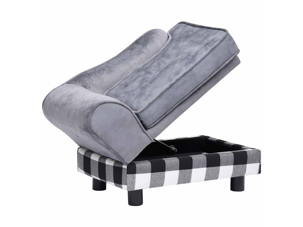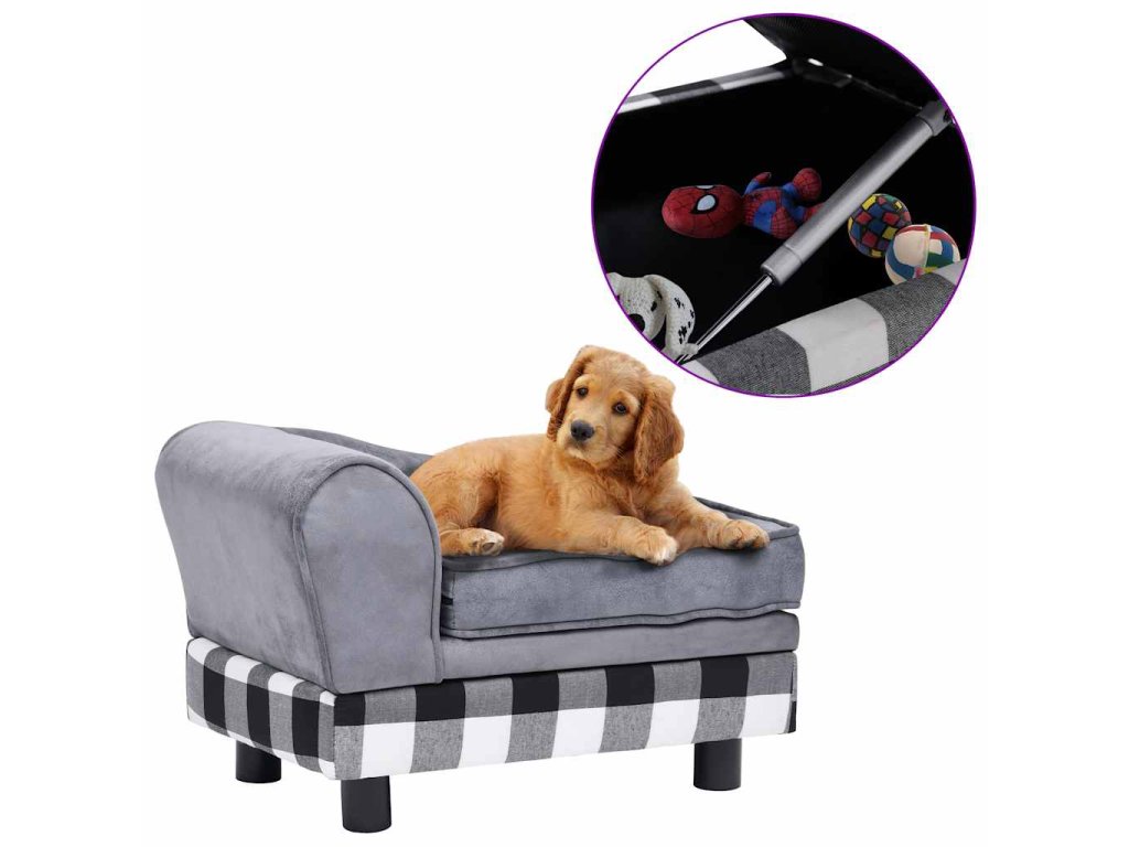 Hustě polstrovaná pohovka pro zvířata má dřevěný rám potažený měkkým plyšem, aby se na ní vašim čtyřnohým kamarádům pohodlně odpočívalo. Dřevěné nohy s protiskluzovým designem zajišťují stabilitu a pevnost celé konstrukce. Úložný box pod sedákem vám nabídne spoustu místa k uložení základních potřeb pro vašeho mazlíčka. Zvířecí gauč je otvírací, a tudíž prostorově úsporný. Potah matrace lze vyprat, aby si pohovka zachovala svůj svěží vzhled.