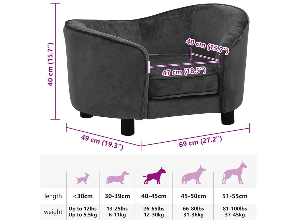 Pohovka pro psy tmavě šedá 69 x 49 x 40 cm plyš 171022