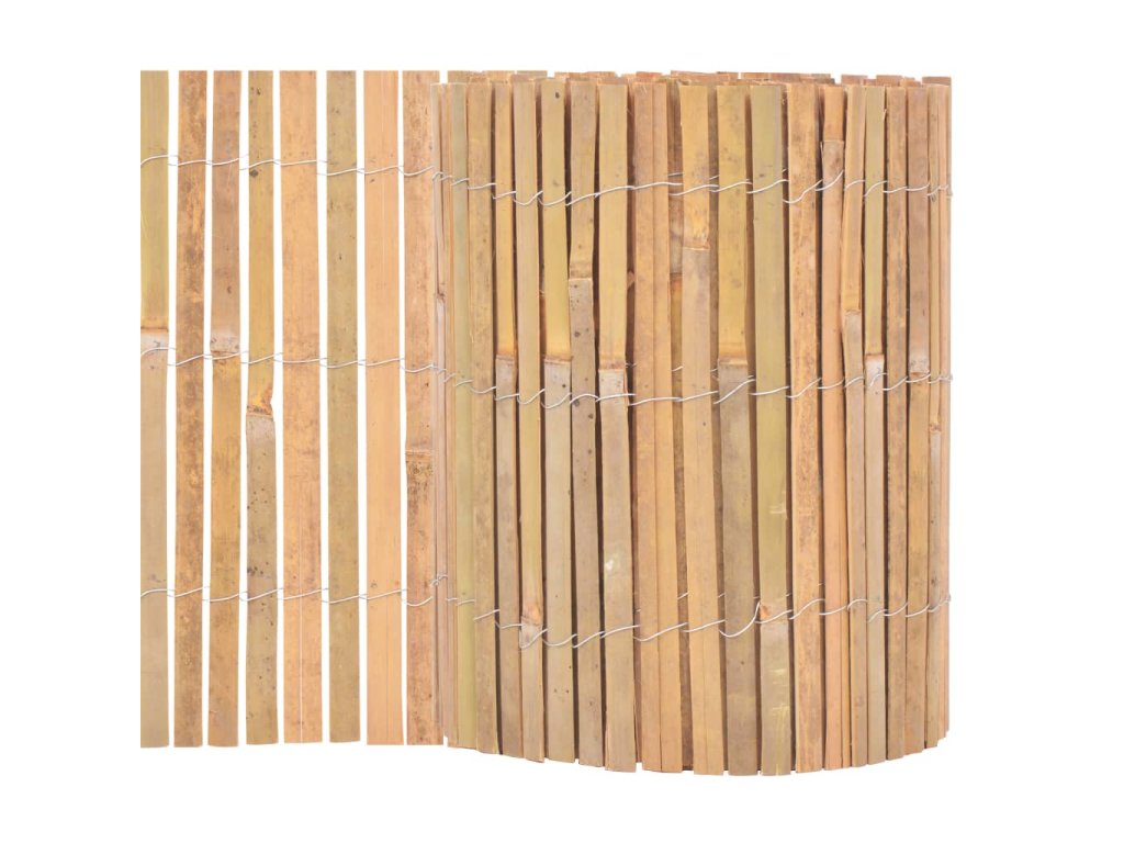 Náš plot je vyroben ze zploštělého bambusu. Můžete ho využít na oddělení určité části vaší zahrady nebo na vymezení cestičky či příjezdové cesty. Jeho přirozený vzhled se bude hodit do každé zahrady; sami uvidíte, že jí propůjčí exotický půvab. Plot stačí přichytit svorkou či přivázat tak, aby se neskácel. Práce s ním je proto velice jednoduchá. Můžete jej snadno použití k ohraničení různě velikých částí zahrady.
