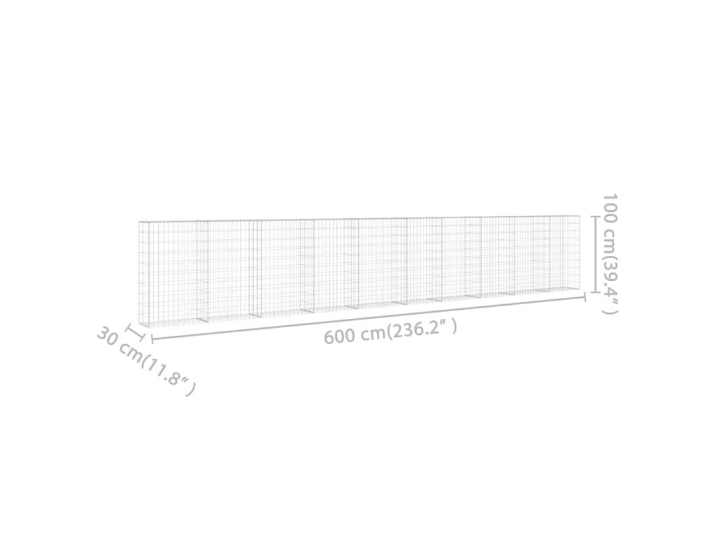 Gabionová zeď s víky z pozinkované oceli 600 x 30 x 100 cm 143584