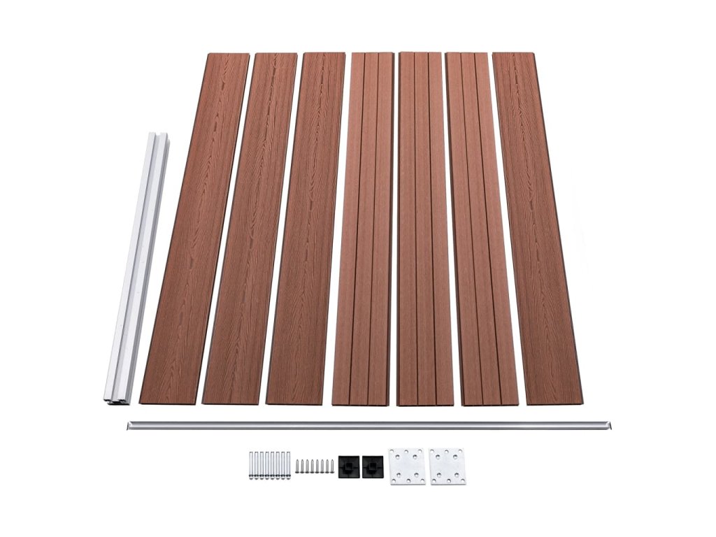 - Materiál: WPC (dřevoplast), hliník, ocel