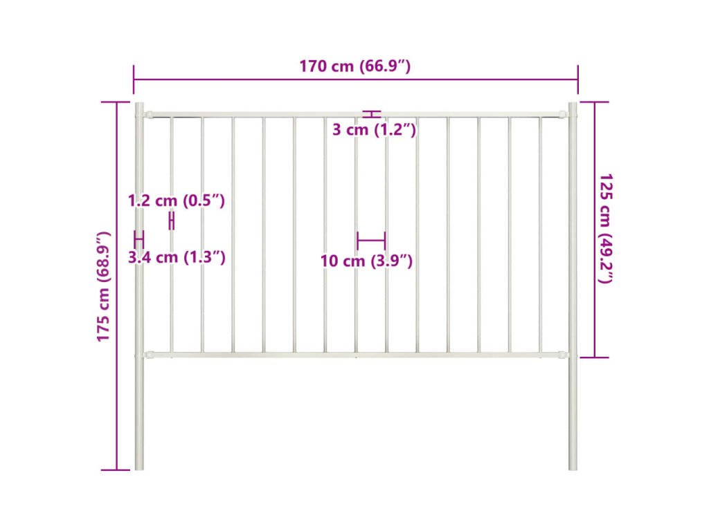 Plotový panel se sloupky, práškově lakovaná ocel, 1,7 x 1,25 m, bílý 145217