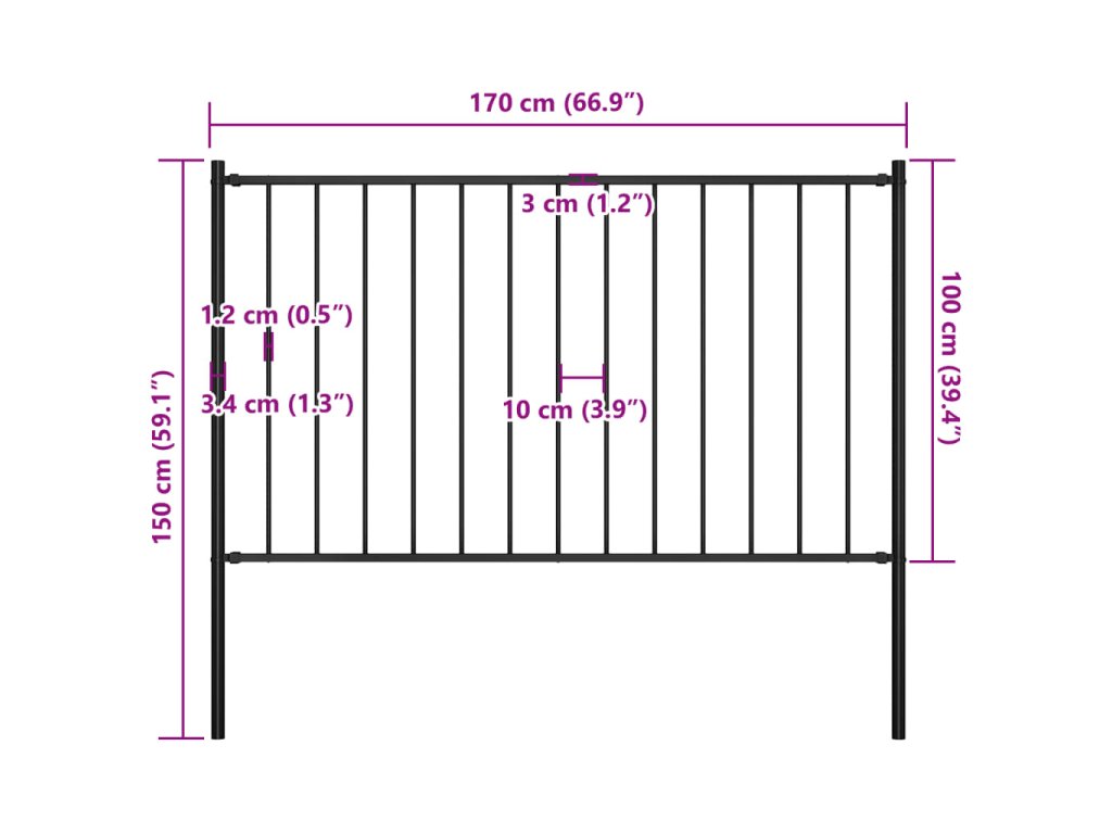 Plotový panel se sloupky, práškově lakovaná ocel, 1,7 x 1 m, černý 145210