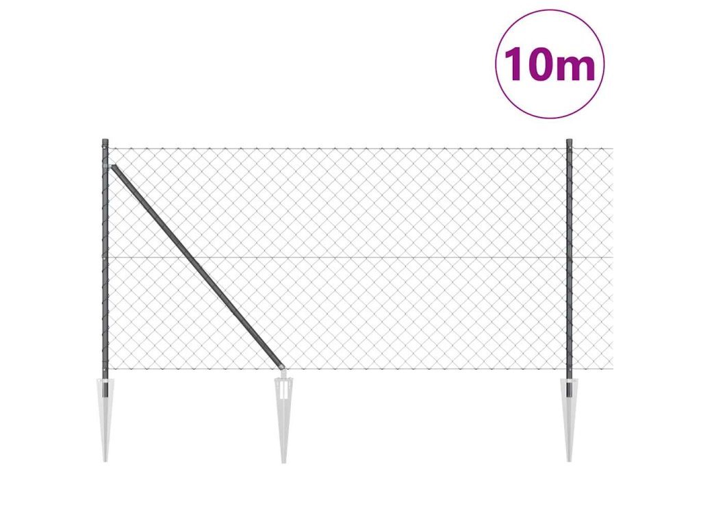 Plotový sloupek. Šedá 10 x 1 m (60 x 60 mm síť) Ocel a PVC 3351185