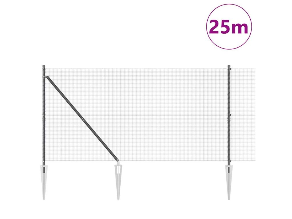 Plotový sloupek. Šedá 25 x 1,2 m (16 x 16 mm síť) Ocel a PVC 3352203