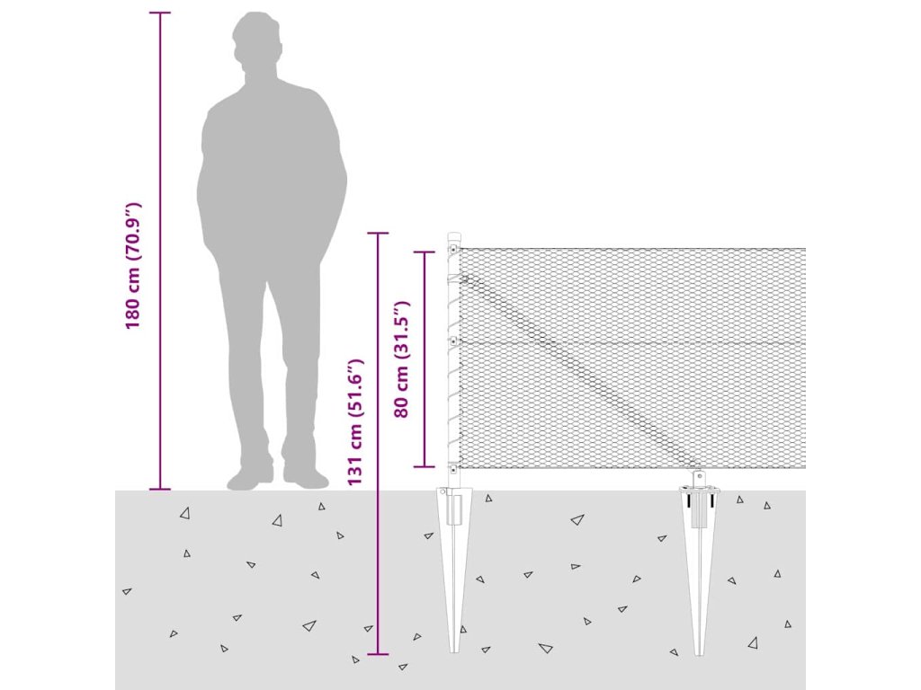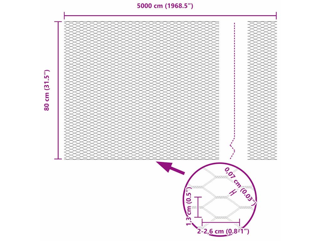 Plotový sloupek. Šedá 50 x 0,8 m (13 mm síť) Ocel a PVC 3353267