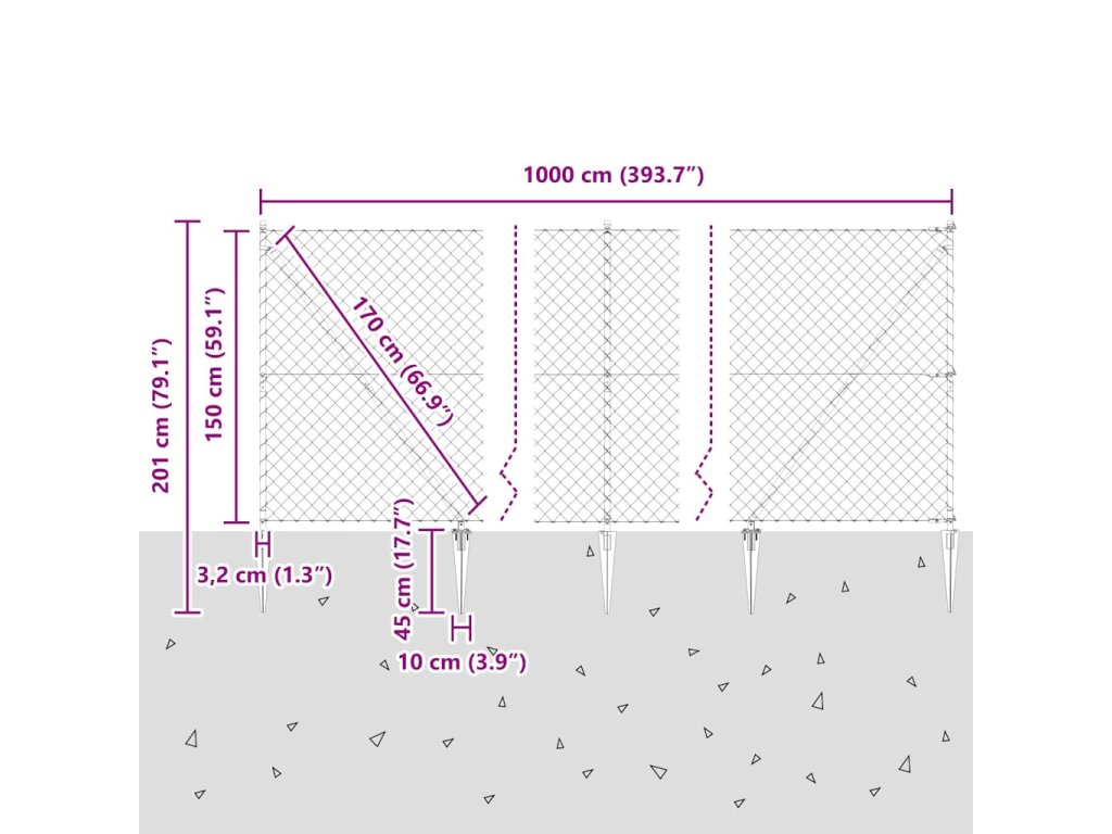 Plotový sloupek. Stříbrná 10 x 1,5 m (síť 40 x 40 mm) Ocel 3351208