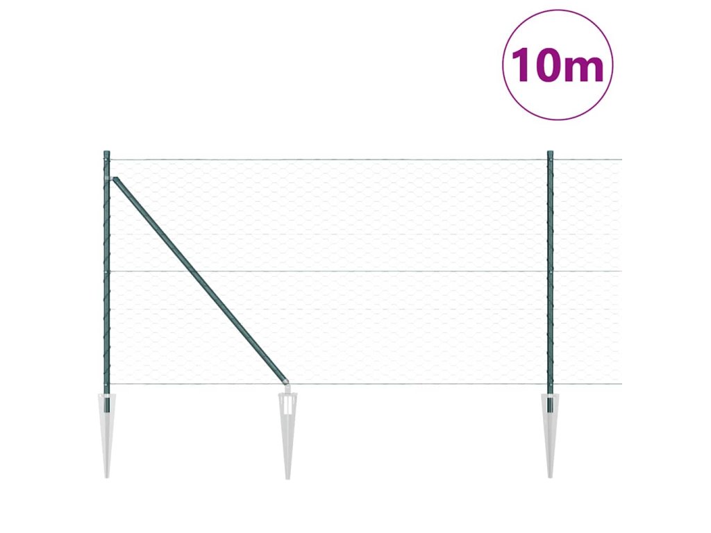 Plotový sloupek. Zelená 10 x 1 m (50 mm síť) Ocel a PVC 3353061