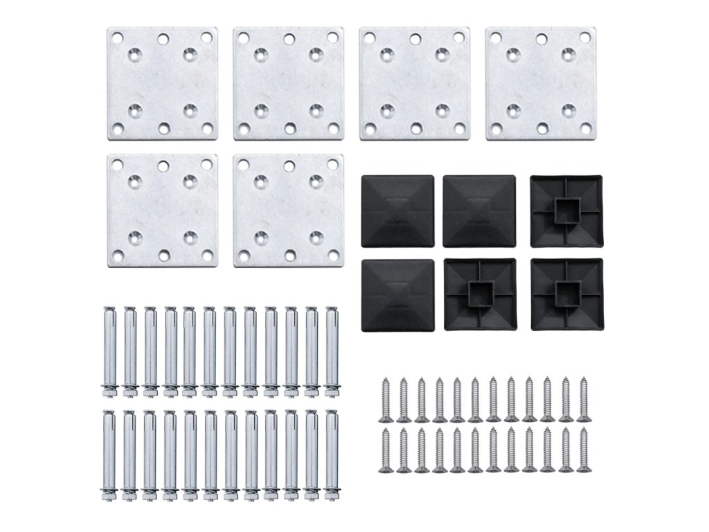 Plotové panely mají modulární design, který umožňuje snadnou instalaci a neomezené prodlužovaní plotu. Sloupky mají tři drážky, takže můžete plot sestavit různými způsoby, například v přímce (180 stupňů), v pravém úhlu (90 stupňů) nebo ve tvaru písmene „T“. Multifunkční ocelové nohy lze upevnit dvěma způsoby. První způsob je našroubovat je na povrch dodanými kotevními šrouby. Druhý způsob je ukotvit je do cementového základu zemním hrotem (není součástí balení).