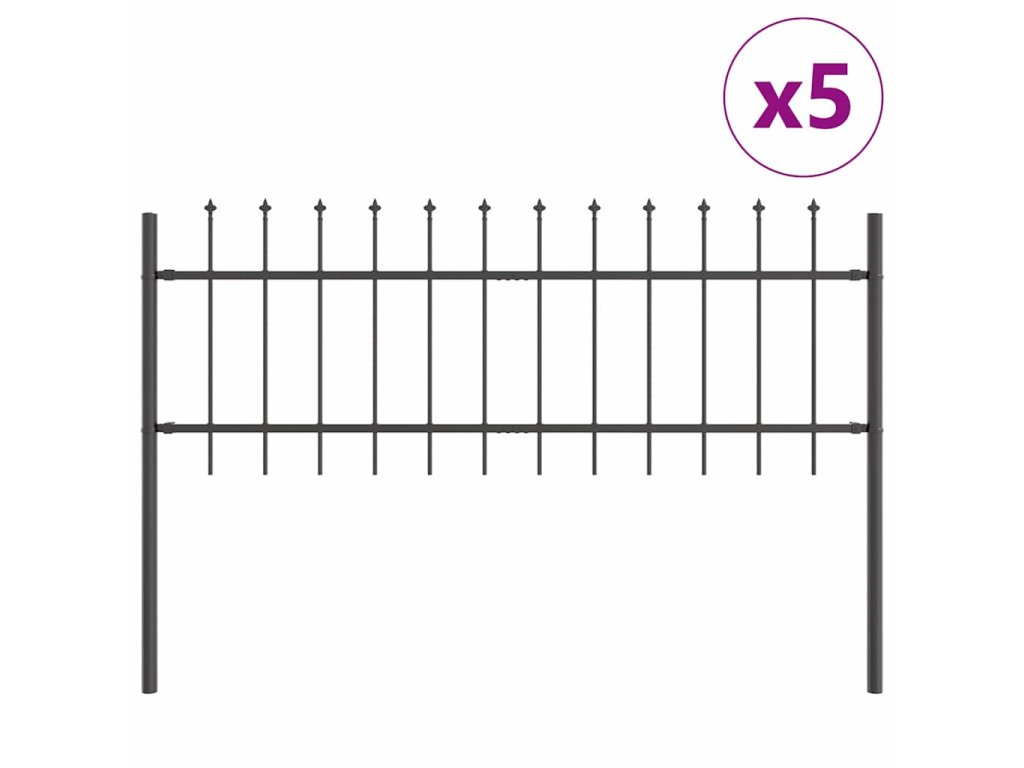 Zahradní plot 5 pcs Šedá 8,5 x 0,6 m Práškově lakovaná ocel 3334088