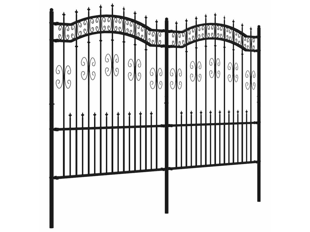 Zahradní plot Kampen s kopím nahoře černý 240 x 150 cm ocelový 151087