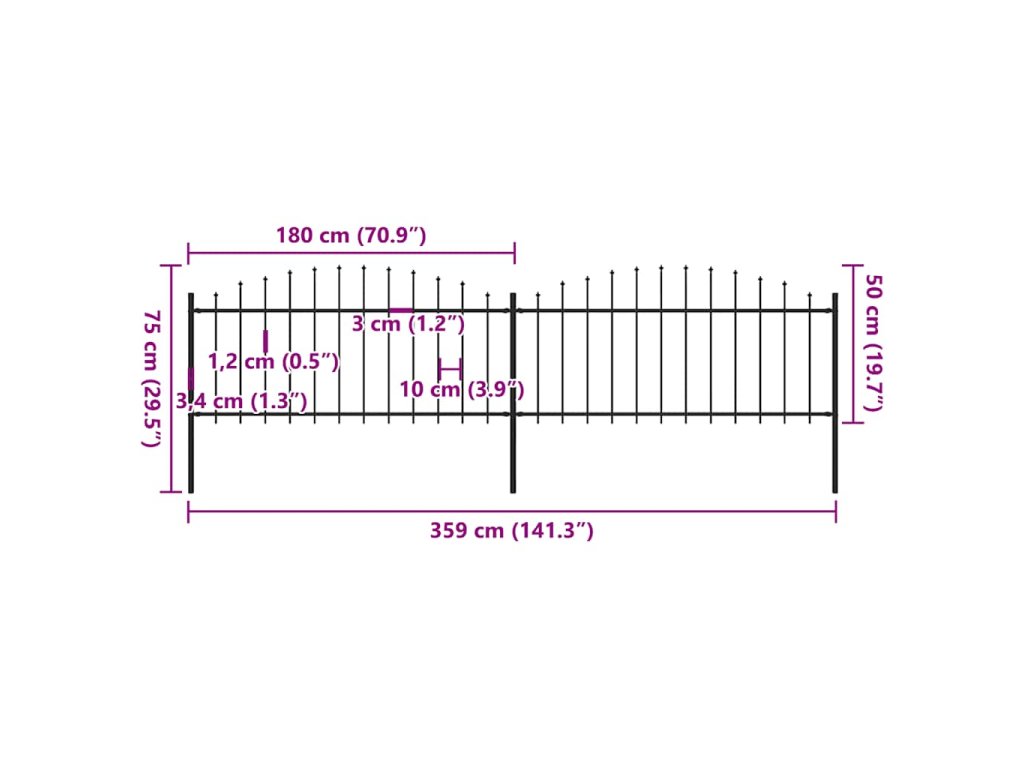 Zahradní plot s hroty ocel (0,5–0,75) x 3,4 m černý 277704