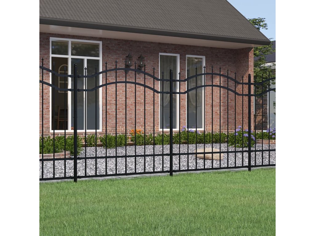 Zahradní plot s kopím nahoře černý 239 x 125 cm, práškově lakovaná ocel 151081