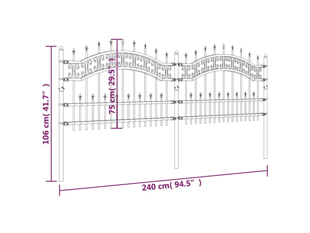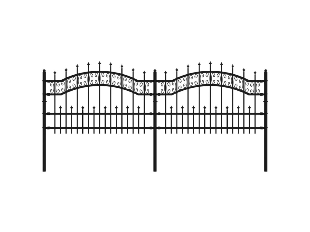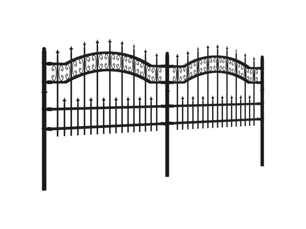 Zahradní plot s kopím nahoře černý 240 x 75 cm, práškově lakovaná ocel 151084