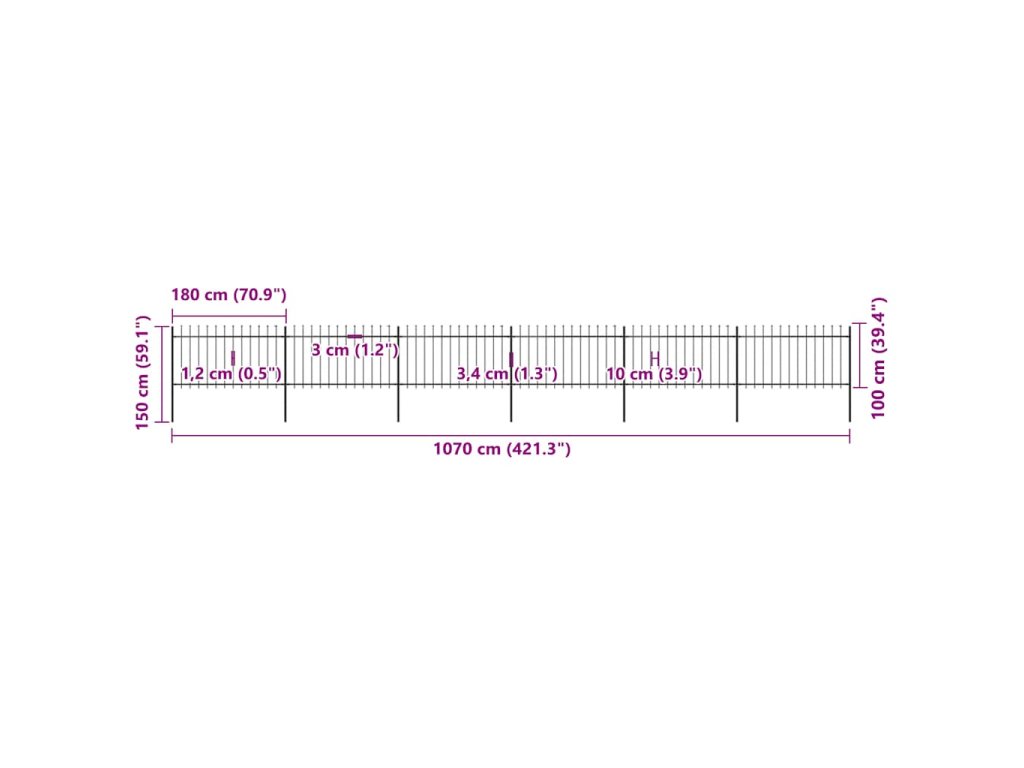 Zahradní plot s kopím nahoře ocelový 1070 x 100 cm černý 277616