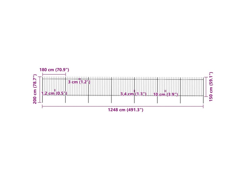 Zahradní plot s kopím nahoře ocelový 1248 x 150 cm černý 277635