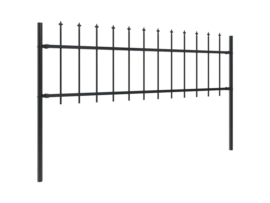 Zahradní plot s kopím nahoře ocelový 1248 x 60 cm černý 277599