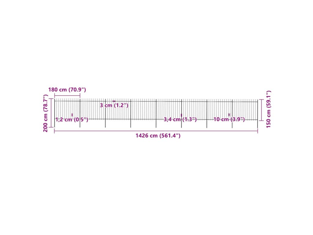 Zahradní plot s kopím nahoře ocelový 1426 x 150 cm černý 277636
