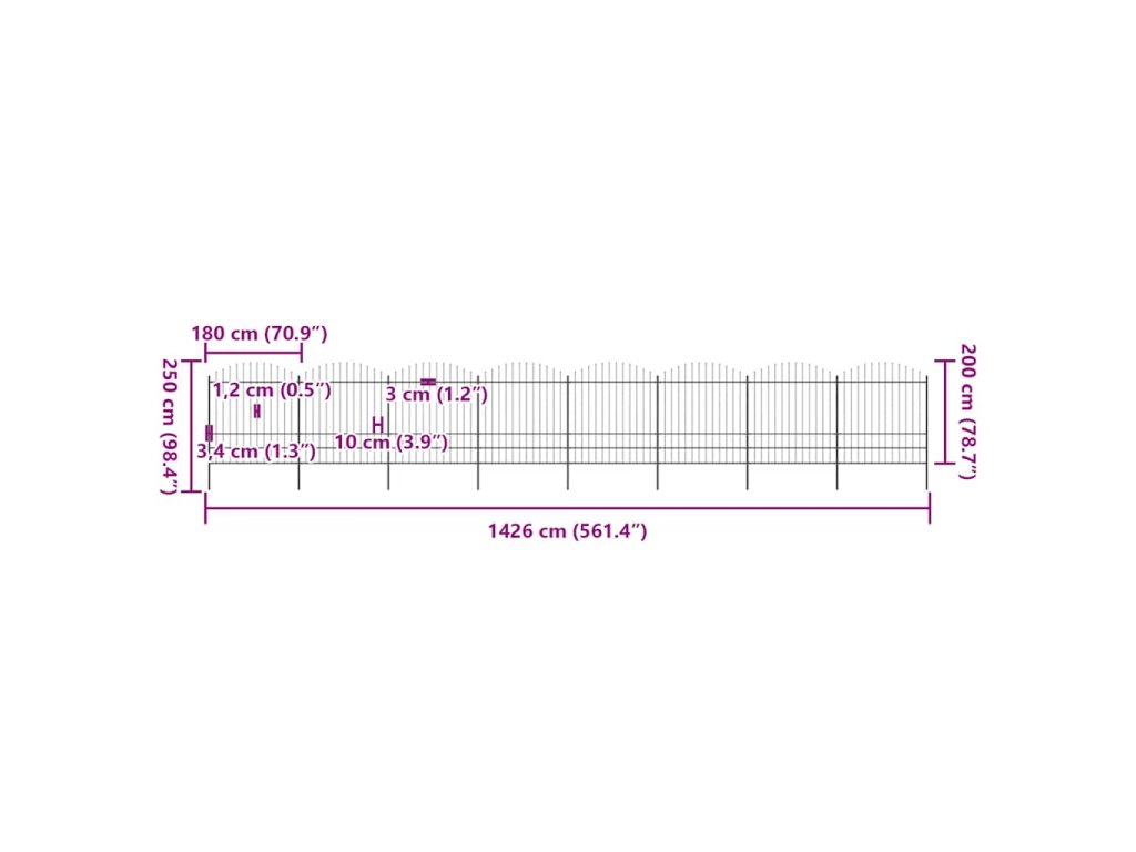 Zahradní plot s kopím nahoře ocelový 1426 x 200 cm černý 277755