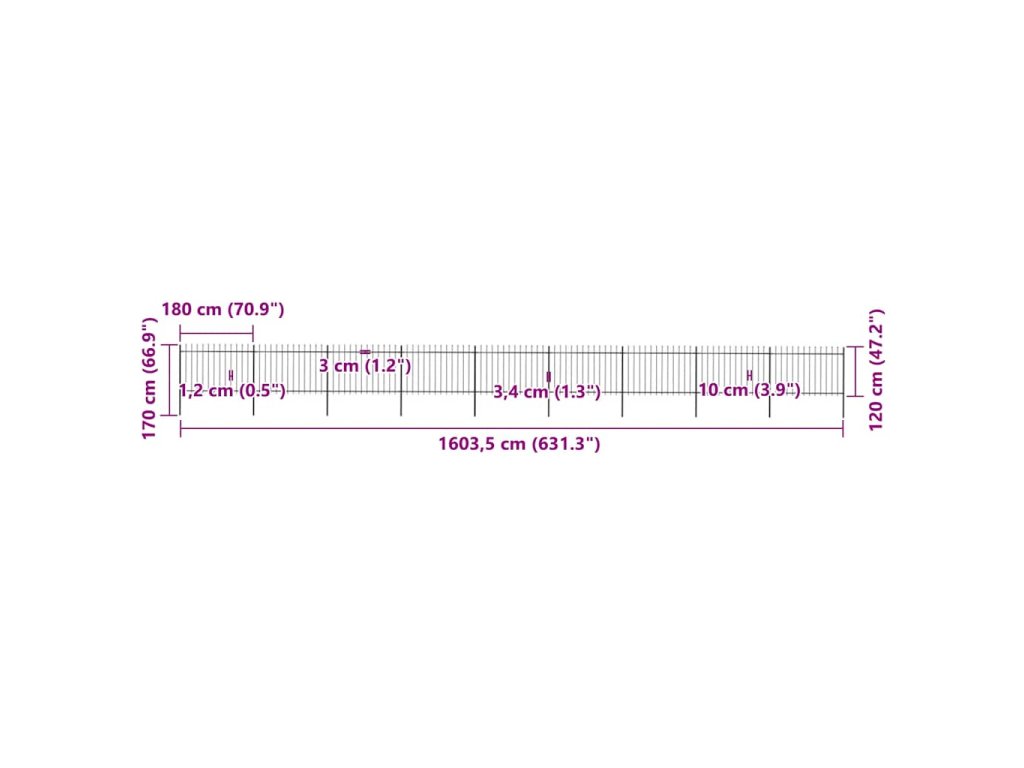 Zahradní plot s kopím nahoře ocelový 1603,5 x 120 cm černý 277628