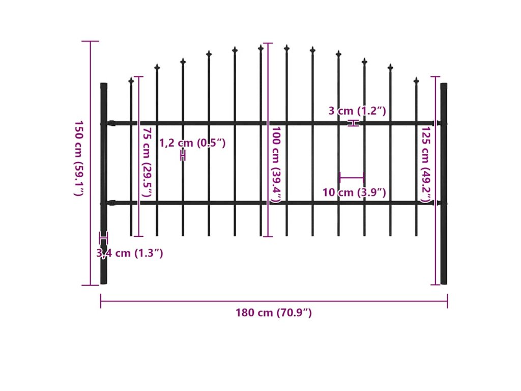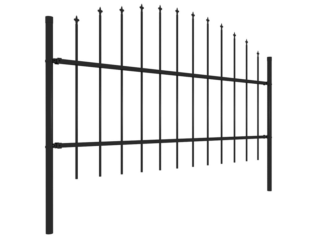 Zahradní plot s kopím nahoře ocelový 181 x 100 cm černý 144941