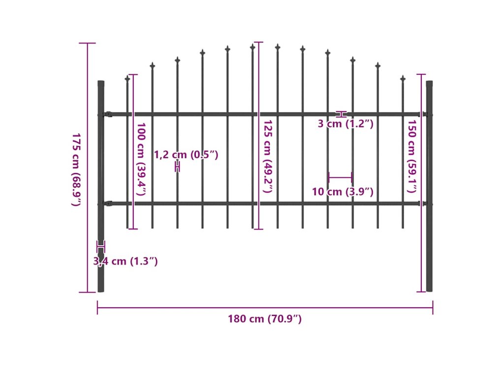 Zahradní plot s kopím nahoře ocelový 181 x 125 cm černý 144942