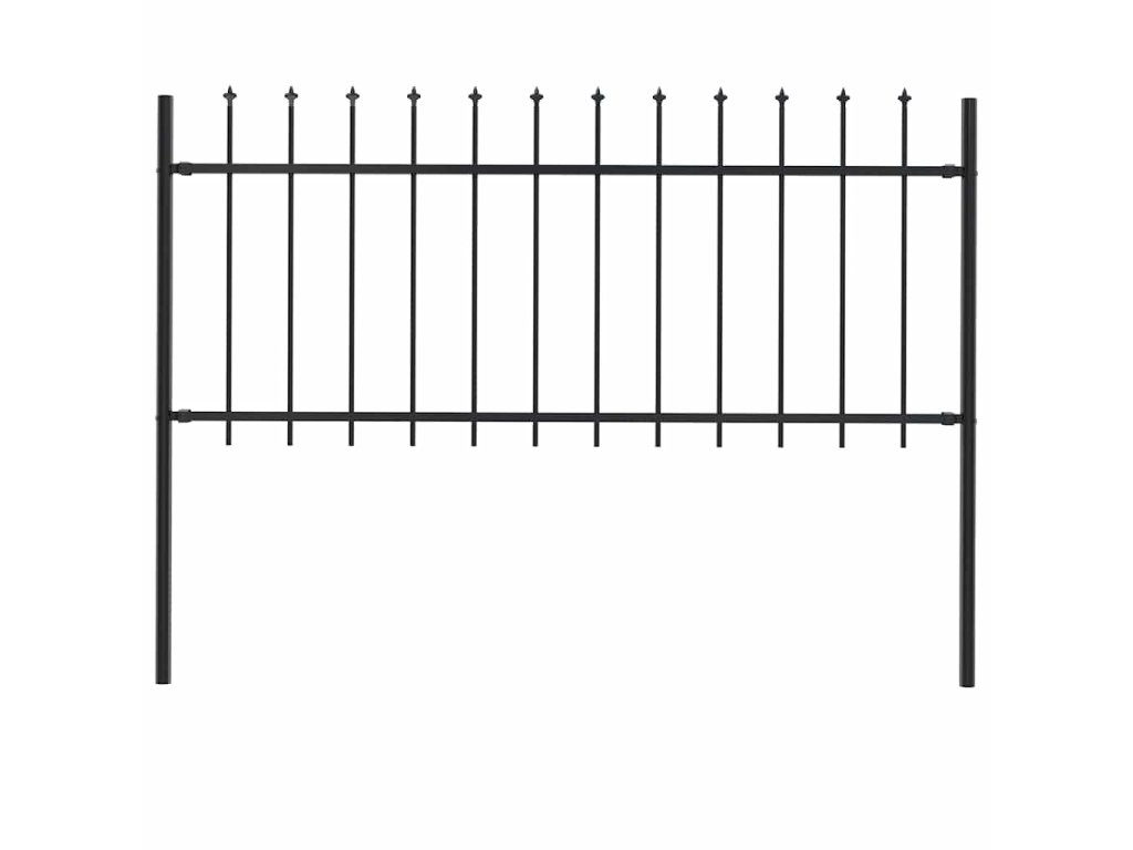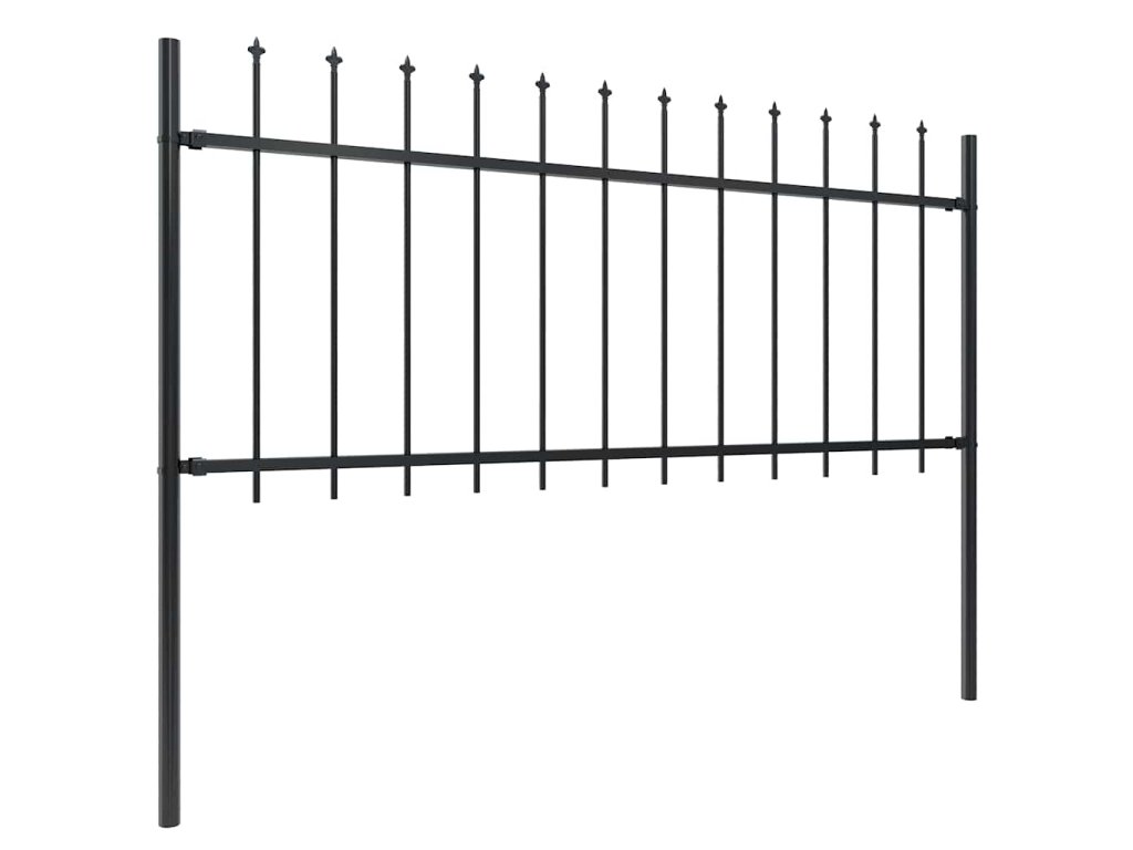 Zahradní plot s kopím nahoře ocelový 181 x 80 cm černý 144924