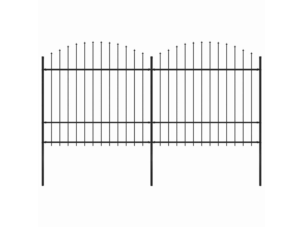Zahradní plot s kopím nahoře ocelový 359 x 175 cm černý 277740