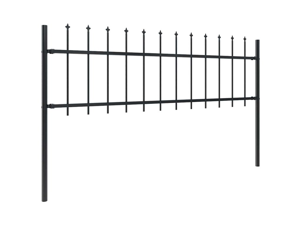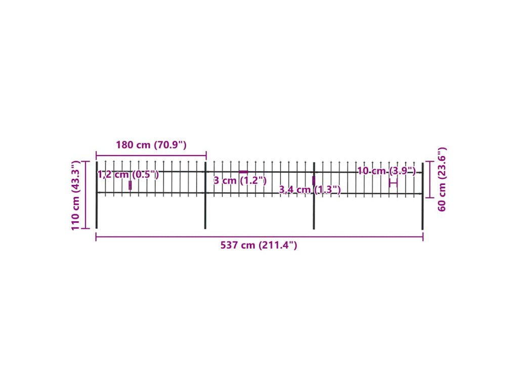 Zahradní plot s kopím nahoře ocelový 537 x 60 cm černý 277595