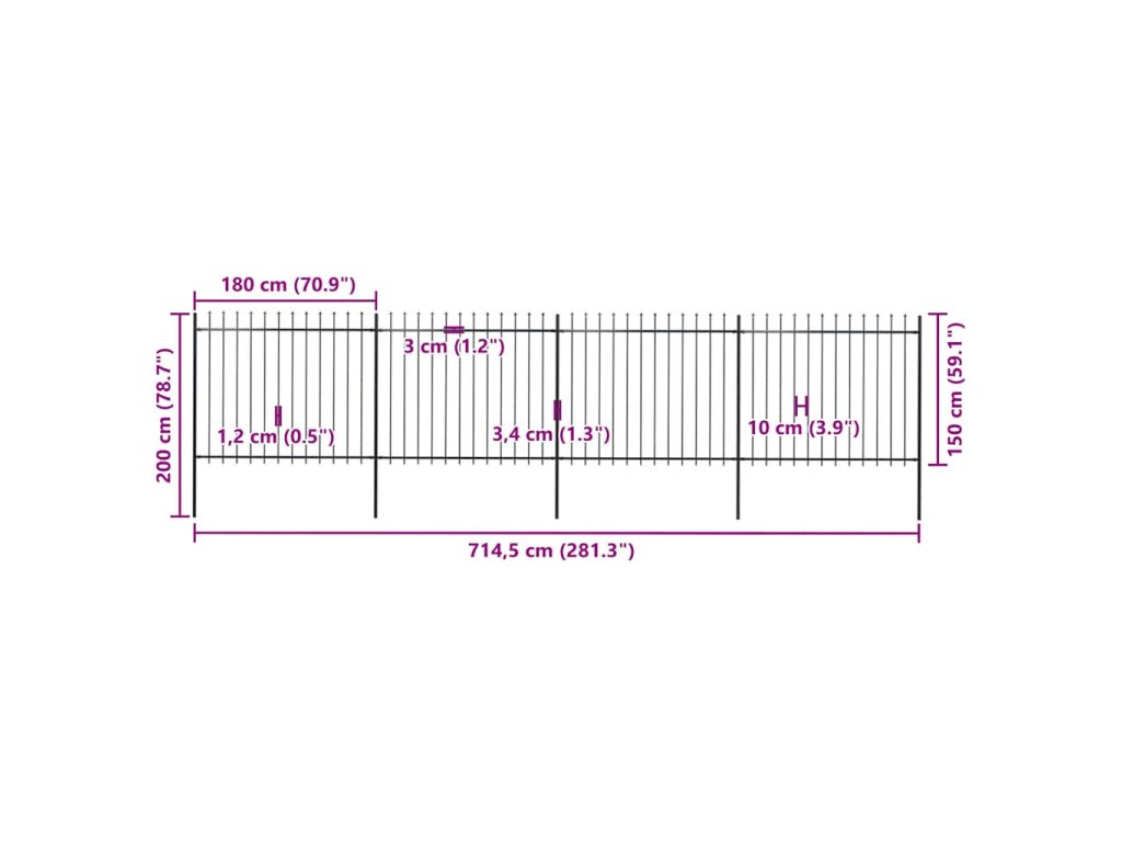 Zahradní plot s kopím nahoře ocelový 714,5 x 150 cm černý 277632