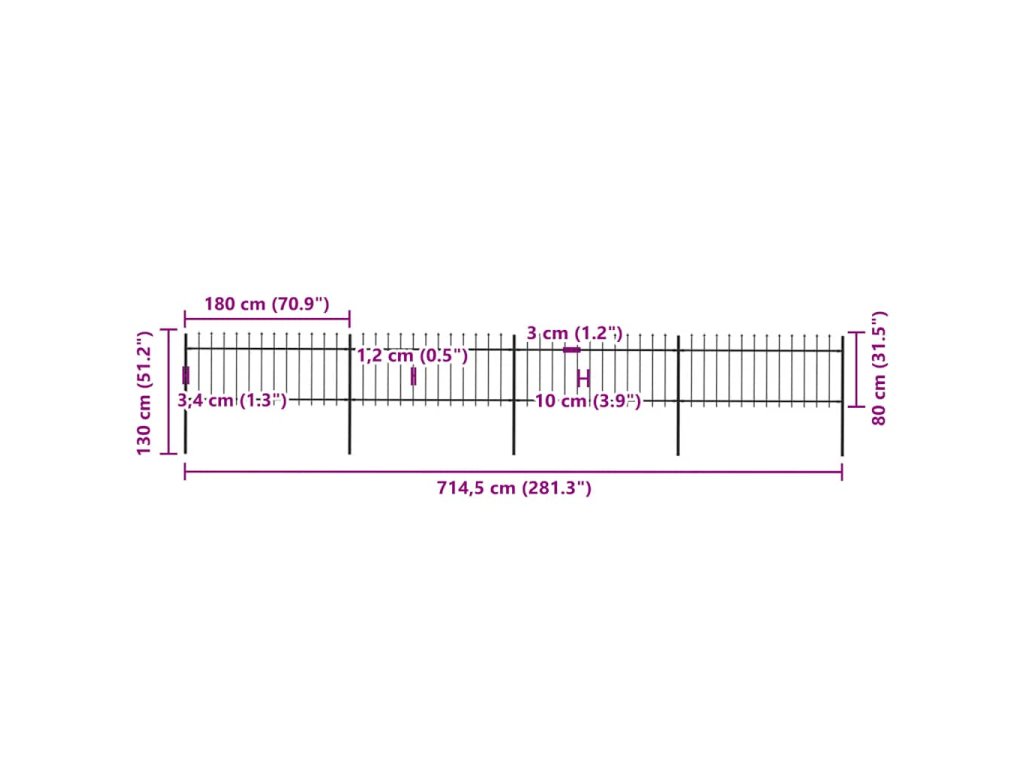 Zahradní plot s kopím nahoře ocelový 714,5 x 80 cm černý 277605
