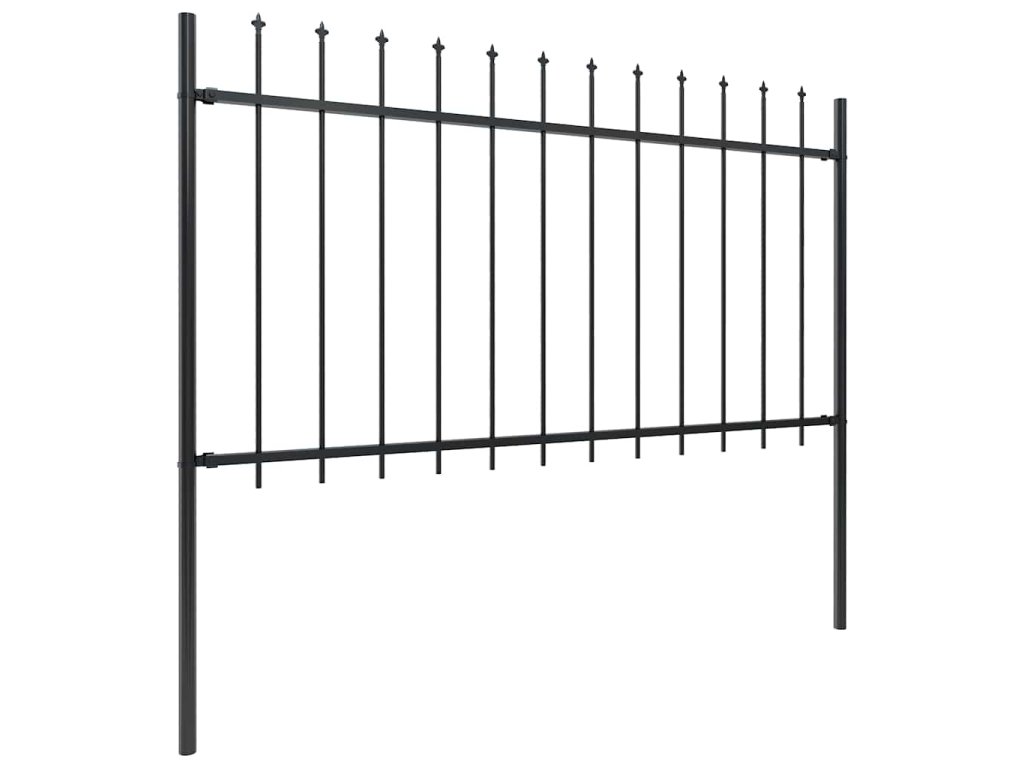 Zahradní plot s kopím nahoře ocelový 892,5 x 100 cm černý 277615