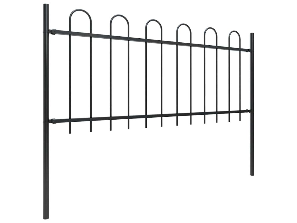 Zahradní plot s obloukem nahoře ocelový 1603,5 x 80 cm černý 277655