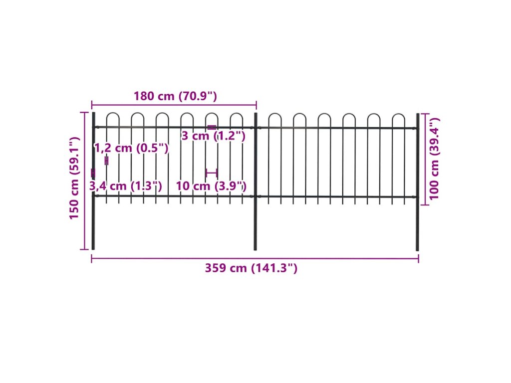 Zahradní plot s obloukem nahoře ocelový 359 x 100 cm černý 277657