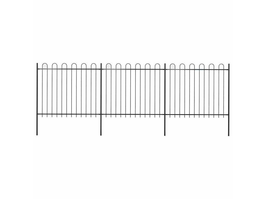 Zahradní plot s obloukem nahoře ocelový 537 x 150 cm černý 277676
