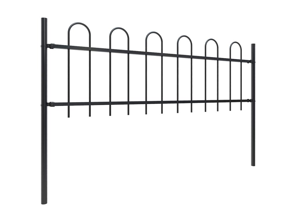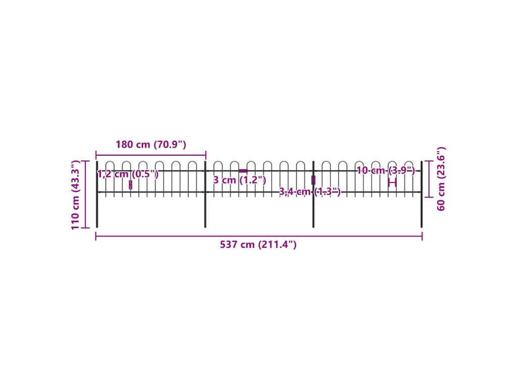Zahradní plot s obloukem nahoře ocelový 537 x 60 cm černý 277640