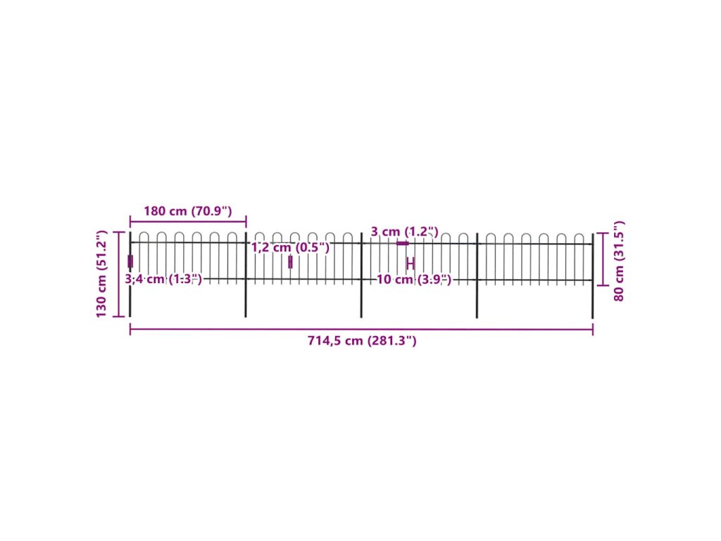 Zahradní plot s obloukem nahoře ocelový 714,5 x 80 cm černý 277650