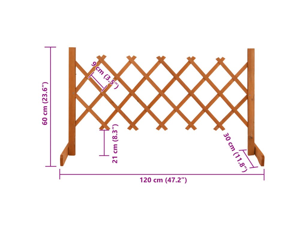 Plotový panel je vyrobený z masivního jedlového dřeva, takže je odolný a vhodný pro venkovní použití. Každý dílec lze roztáhnout do šířky až 120 cm, plot tedy využijete na zahrádkách různých velikostí. Obzvlášť působivě vynikne i podél chodníčků nebo záhonů.