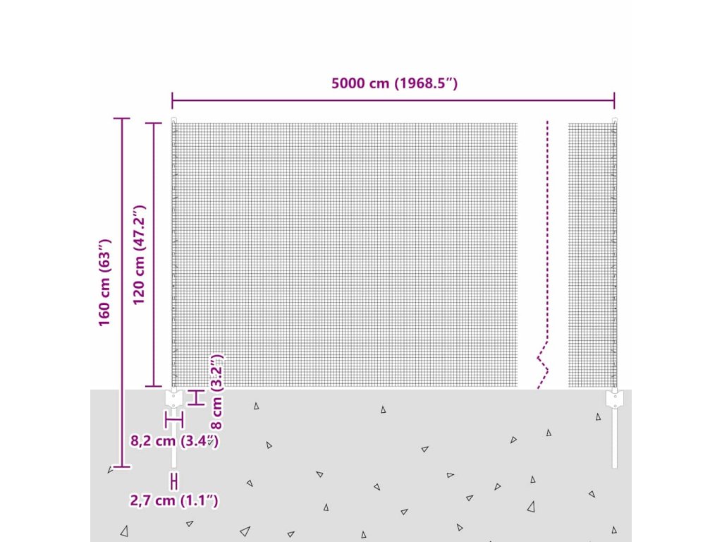 - Celkové rozměry: 5000,0 x 2,7 x 120 cm (D x Š x V)