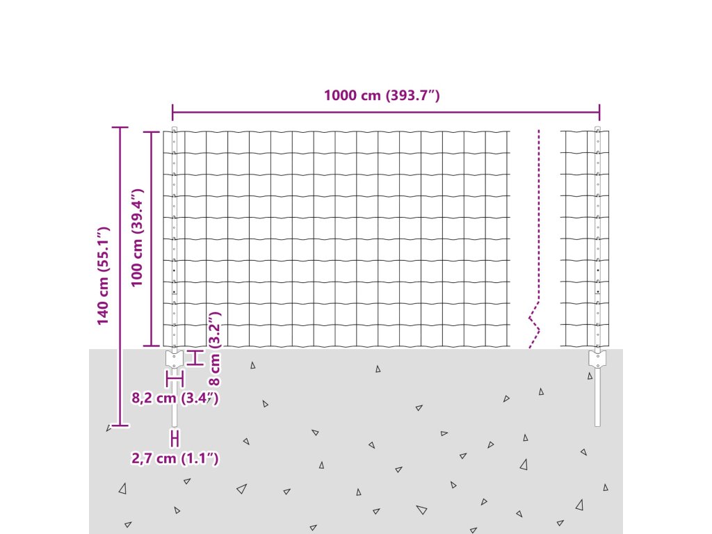 - Celkové rozměry: 1000 x 2,7 x 100 cm (D x Š x V)