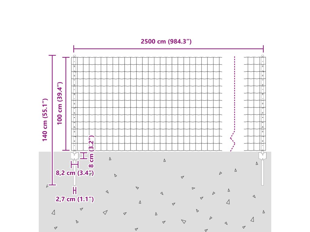 - Celkové rozměry: 2500 x 2,7 x 100 cm (D x Š x V)
