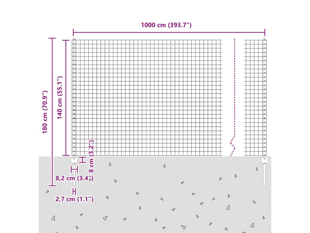 - Celkové rozměry: 1000 x 2,7 x 140 cm (D x Š x V)