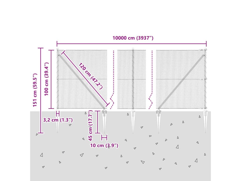 - Celkové rozměry: 10000 x 3.2 x 100 cm (D x Š x V)