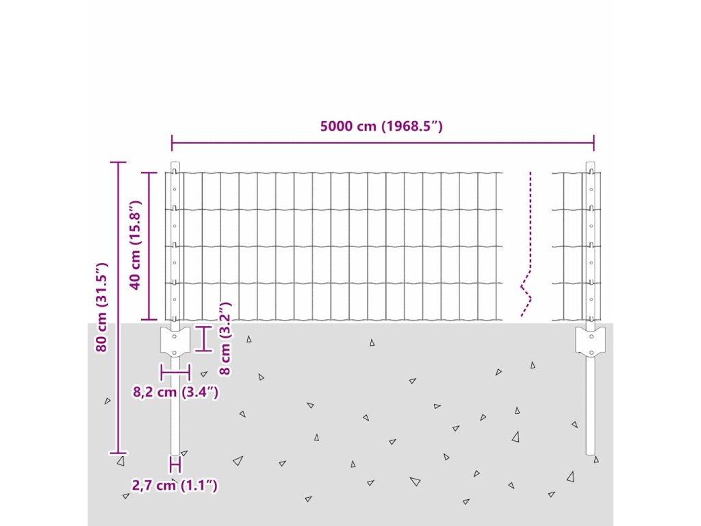 Plot s sloupkem Šedá 0,4 x 50 m Ocel a PVC 3336123