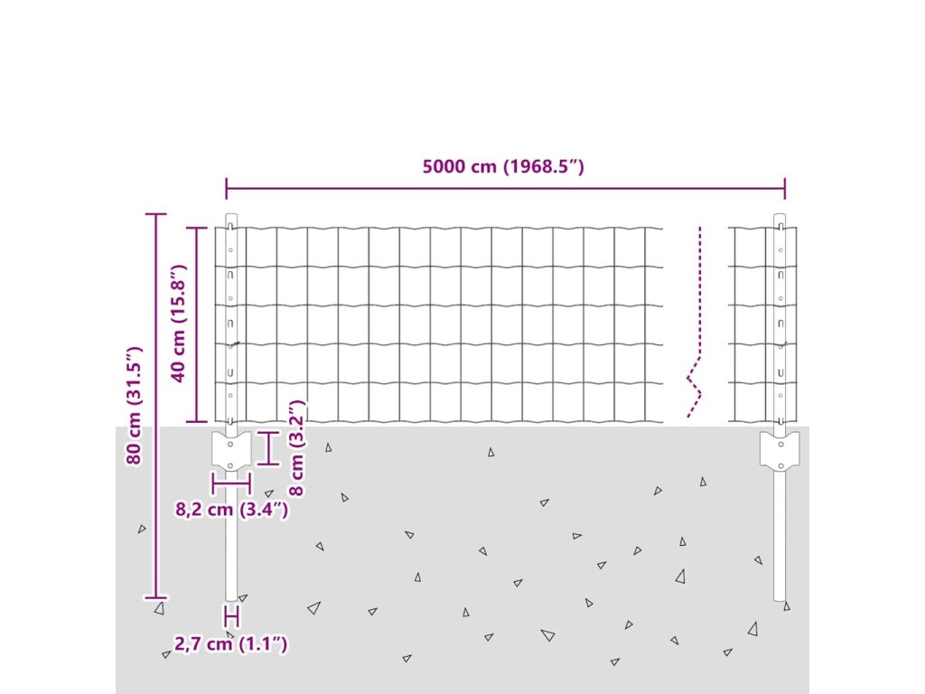 Plot s sloupkem Šedá 0,4 x 50 m Ocel a PVC 3336142